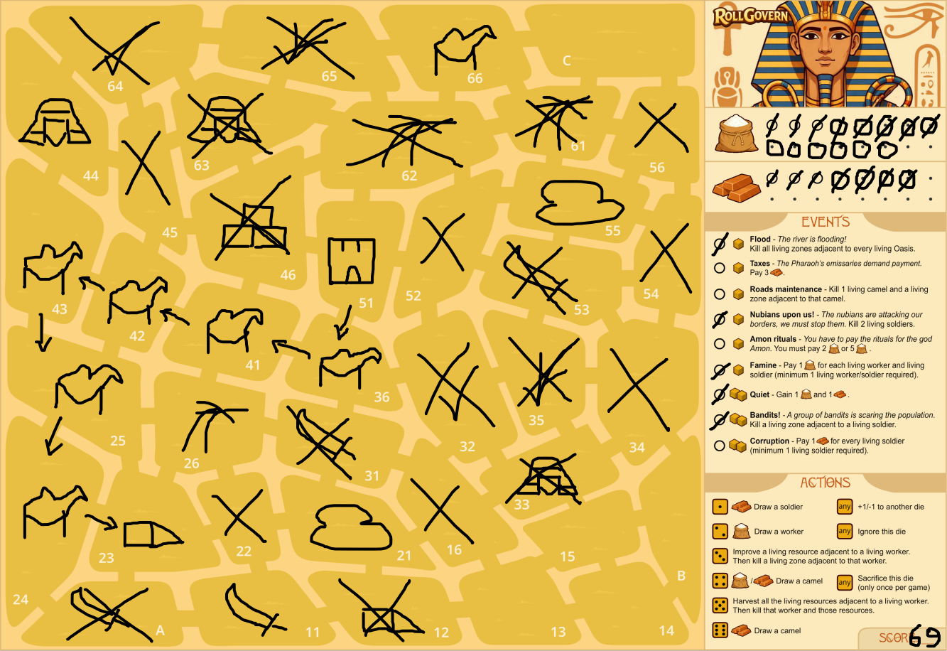 Simple solo game about managing an Egyptian region (print and play)